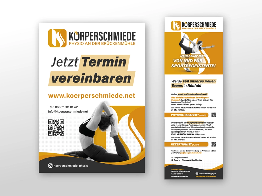 Das Ergebnis: Ein stimmiger und hochwertiger Markenauftritt, der die KÖRPERSCHMIEDE als kompetente Adresse für Therapie und Rehabilitation positioniert.