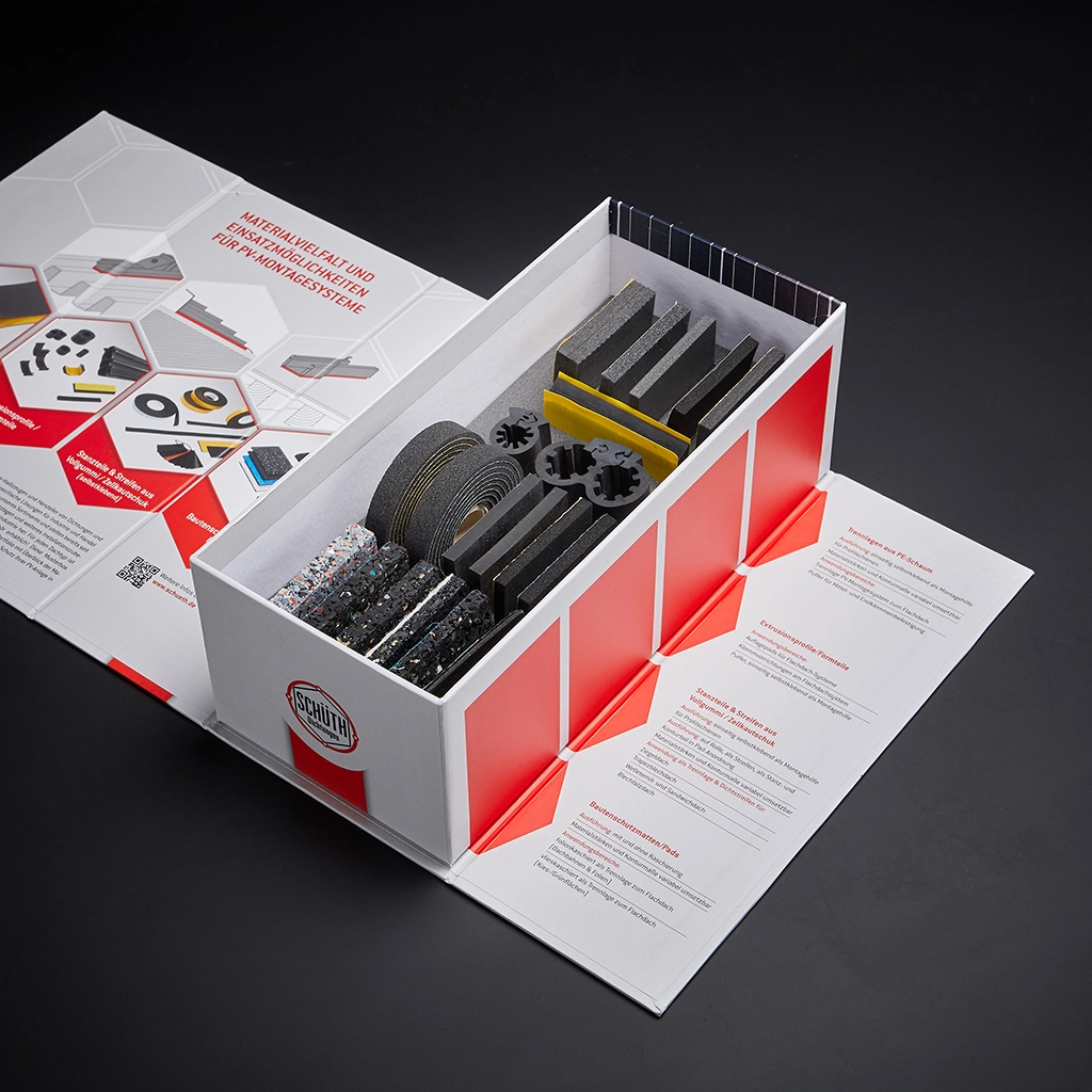 - Messedesign & Präsentation: Gestaltung professioneller Messestände sowie einer hochwertigen Musterbox für die haptische Produktpräsentation.