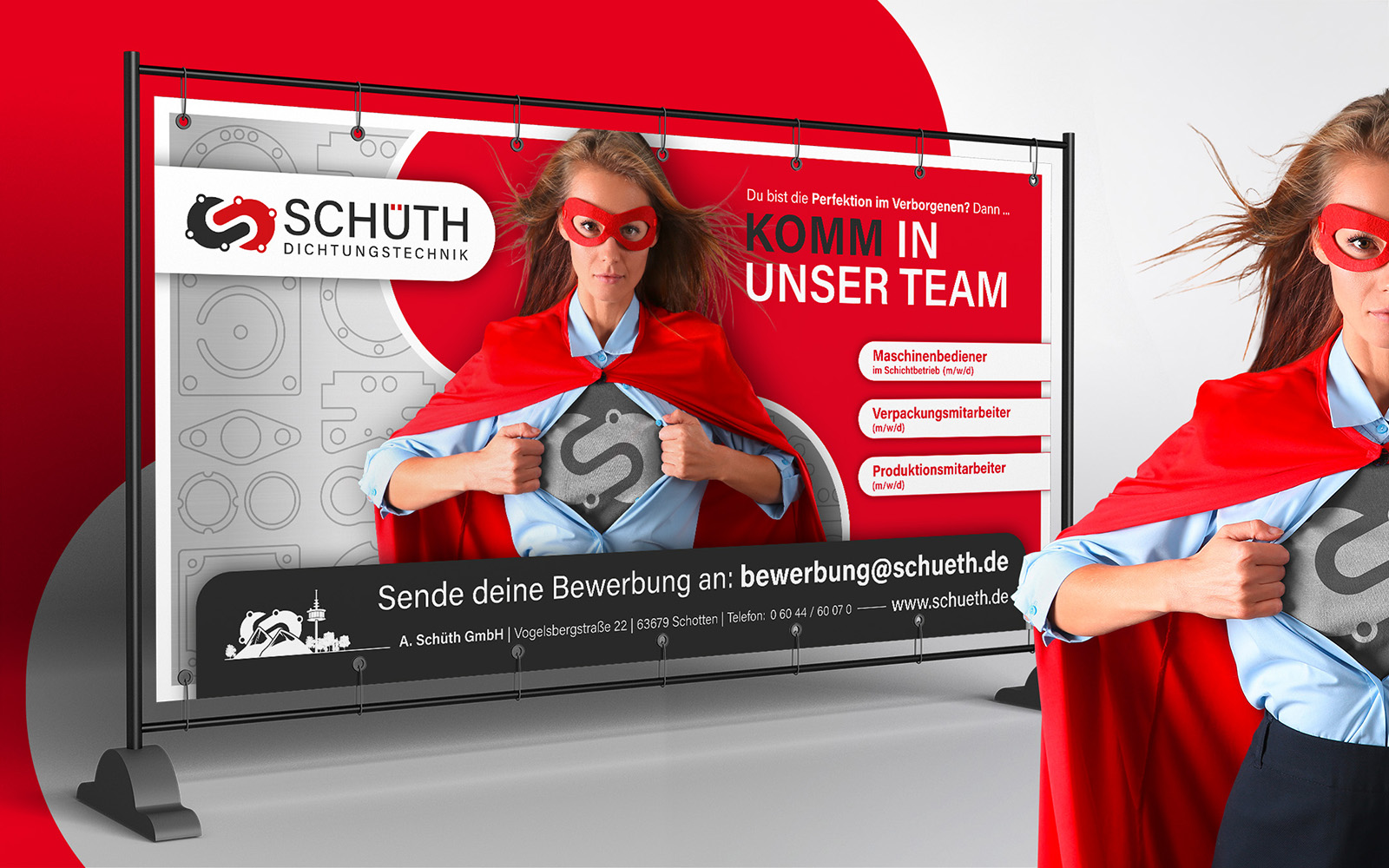 Für die Schüth GmbH haben wir ein umfassendes Gesamtkonzept realisiert, das die Professionalität des Spezialisten für Dichtungstechnik modern und klar widerspiegelt. Ziel war ein Auftritt aus einem Guss, der sowohl Kunden als auch neue Mitarbeiter anspricht.